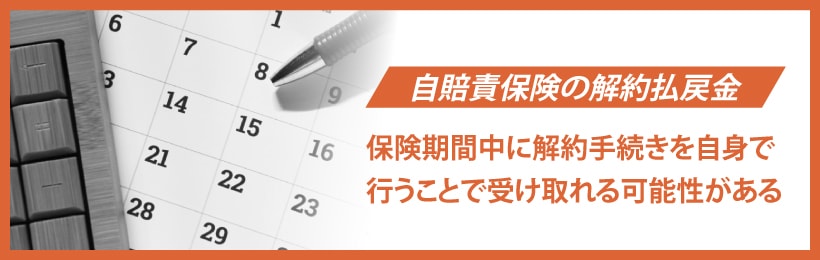 払い戻される条件は、保険期間中に解約手続きを行うことが条件です。ただし、解約払戻金は月割計算なので、保険期間が残り1か月未満の場合は、払い戻しの対象になりません。また、廃車を証明する書類(廃車証明書や軽自動車届出済証返納証明書など)が必要です。