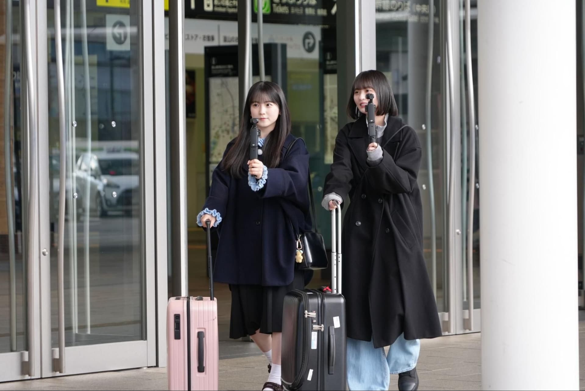 午前11時50分。4期生・遠藤さくらと6期生・鈴木佑捺がJR富山駅に到着した。「富山は初?」と鈴木に尋ねる遠藤。鈴木は「初です!富山、初で『(乃木坂、)逃避行。』も初です」と答える。そんな鈴木に遠藤は、「『(乃木坂、)逃避行。』はもう何も気にせずただ楽しむだけだから」とアドバイスする。