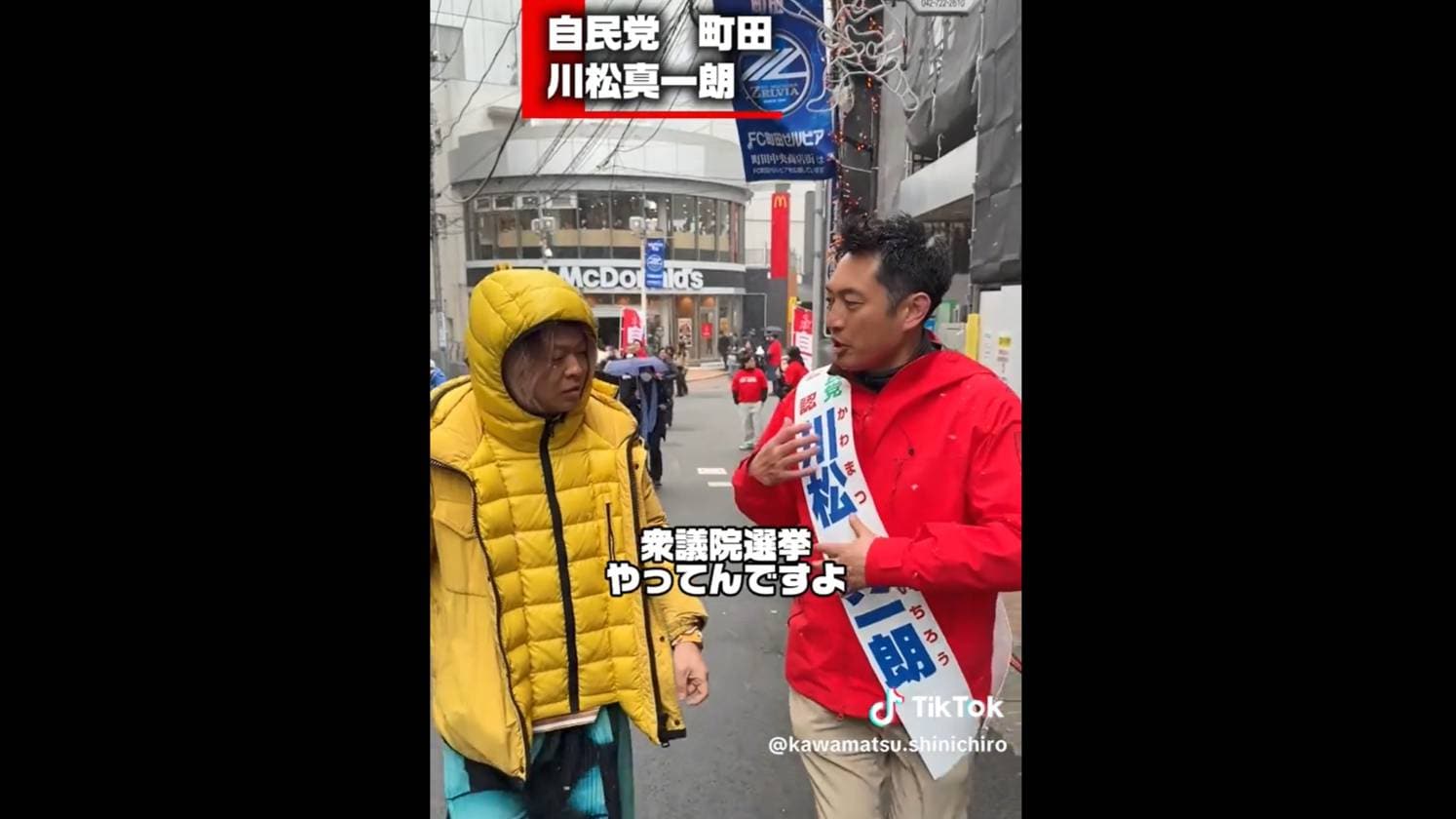 投稿では、たすきを掛けて路上を歩く川松氏が「選挙運動してたらしばゆーさんに会いました」と話しながら、しばゆーの横へと並びます。動画が撮影されたのは東京都町田市だそうで、「町田に何しに来てたんですか」と問う川松氏に対し、しばゆーは「町田に友達がいたから」と、プライベートであることを明かしました。