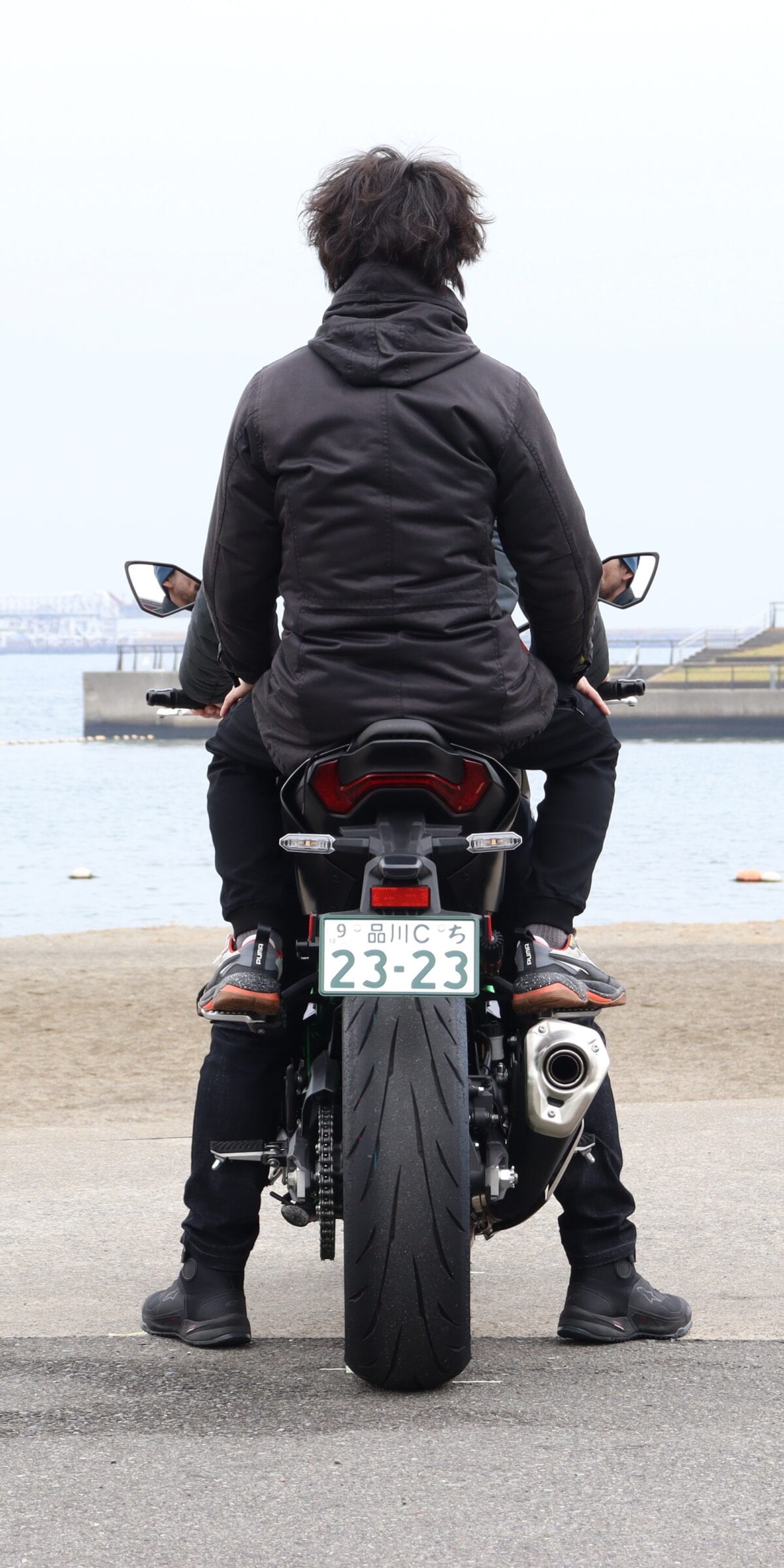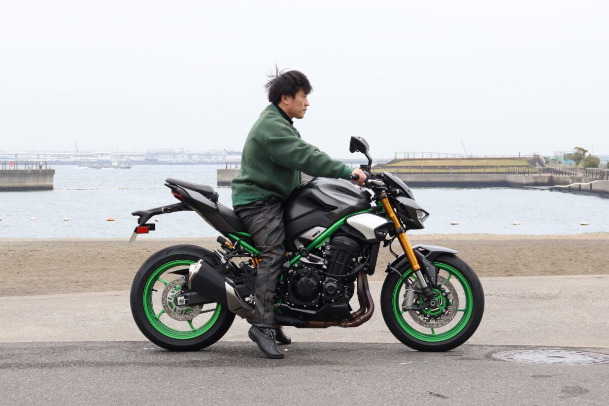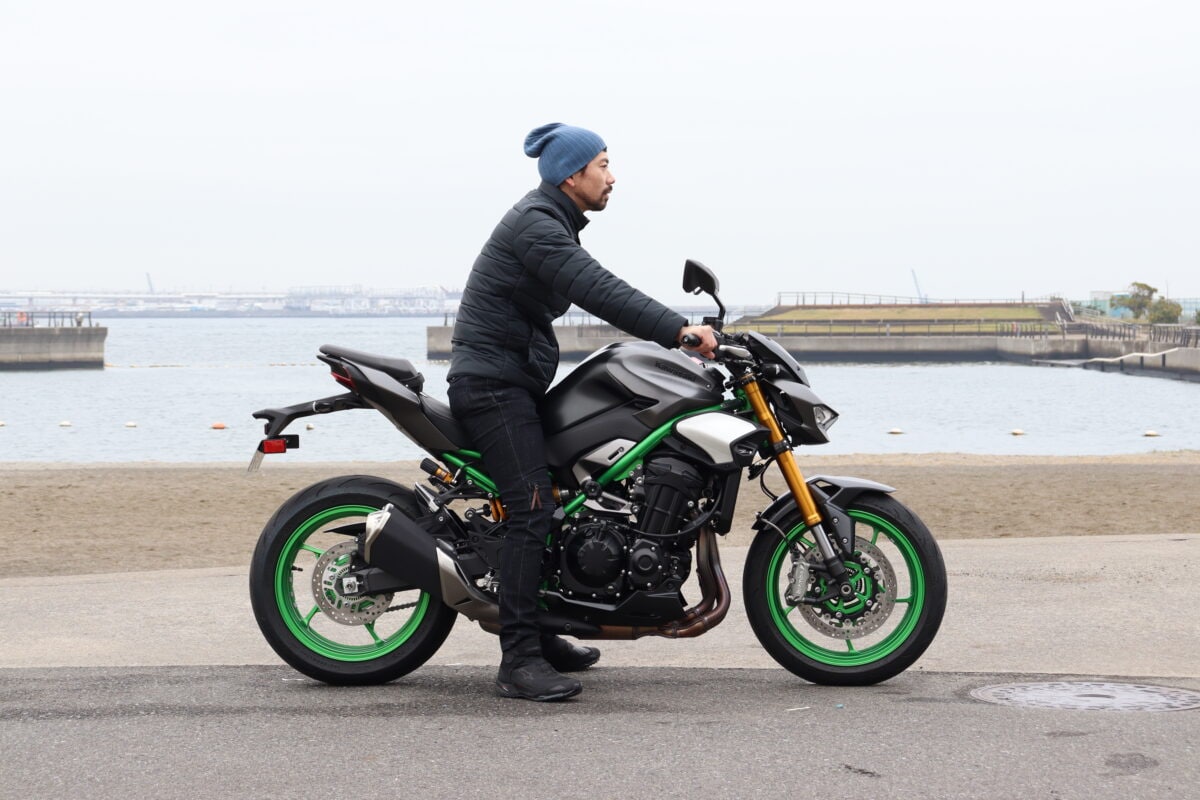 Z900SEも同様。まっすぐに足をおろせる車体構成のため、安心して車体を支えられる結果になった。