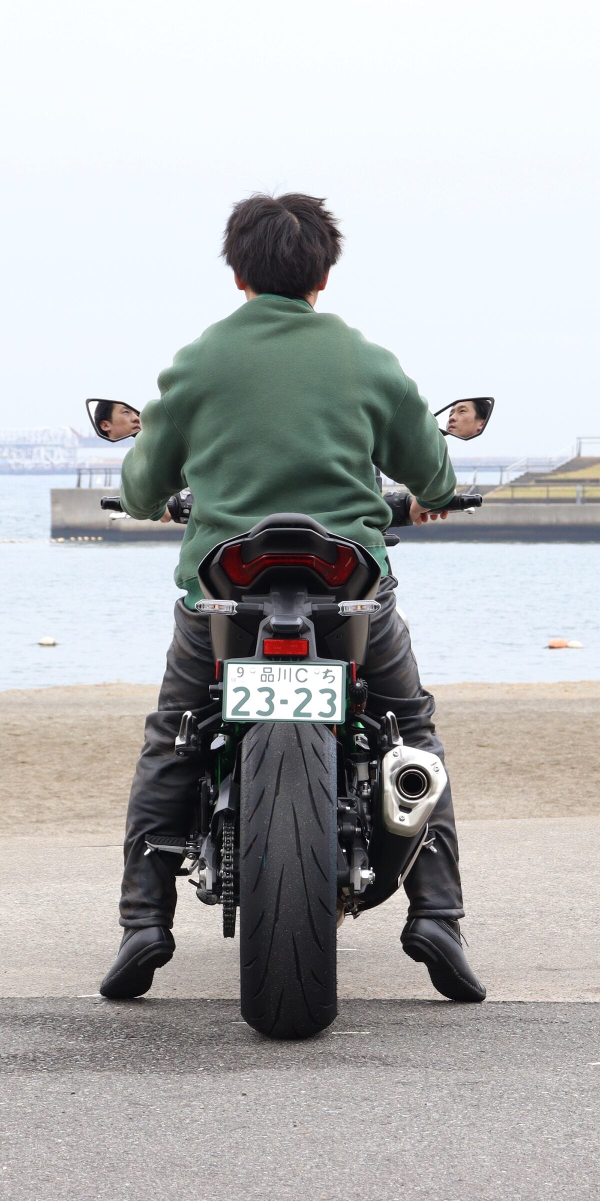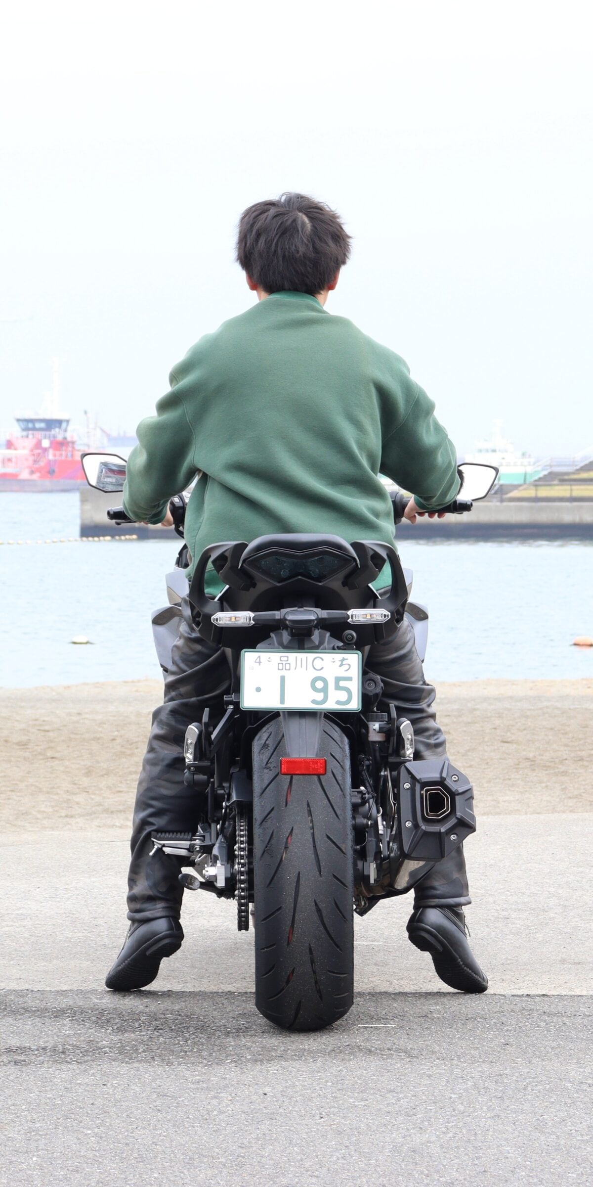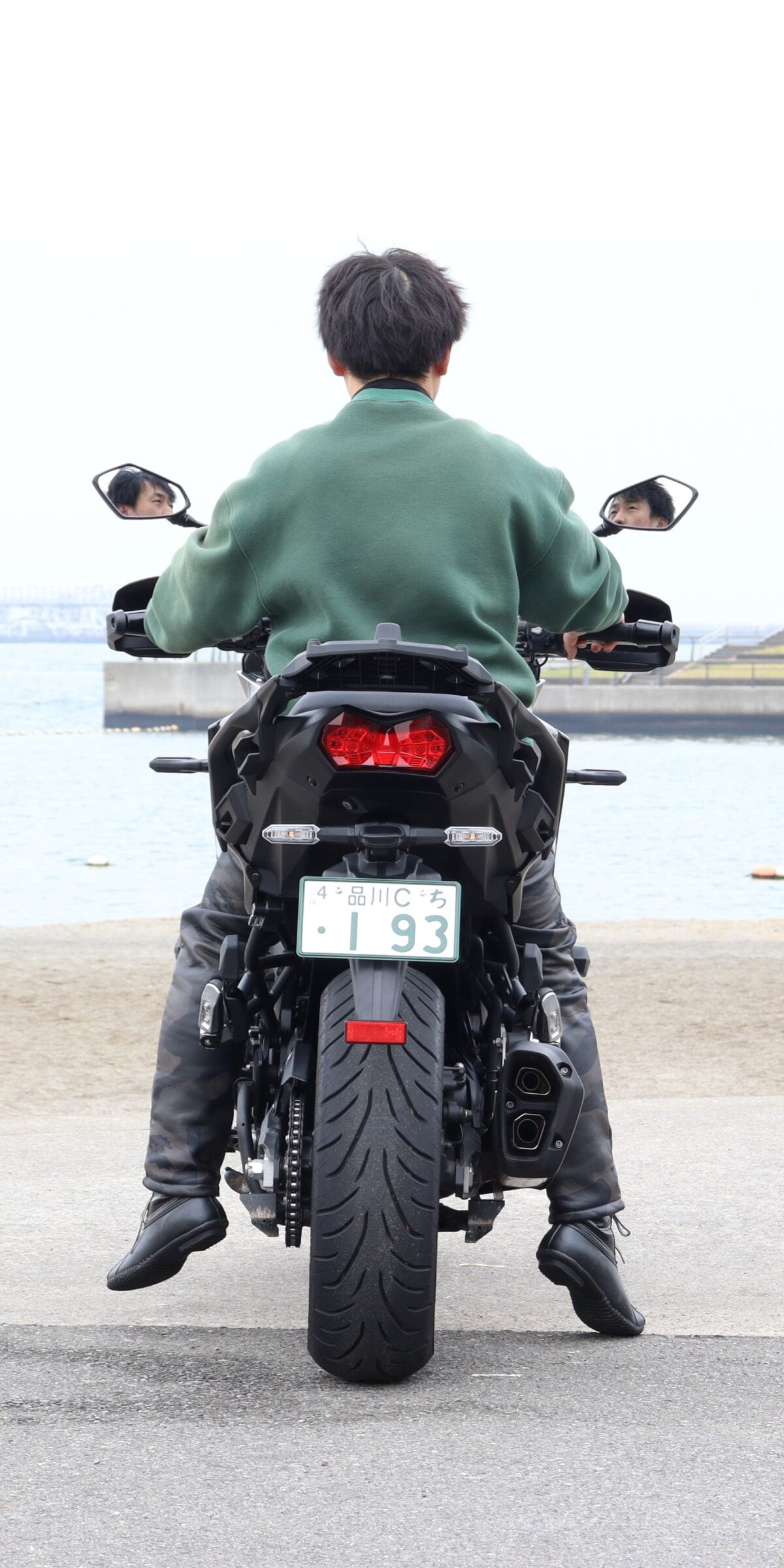 Z900SEも同様。まっすぐに足をおろせる車体構成のため、安心して車体を支えられる結果になった。
