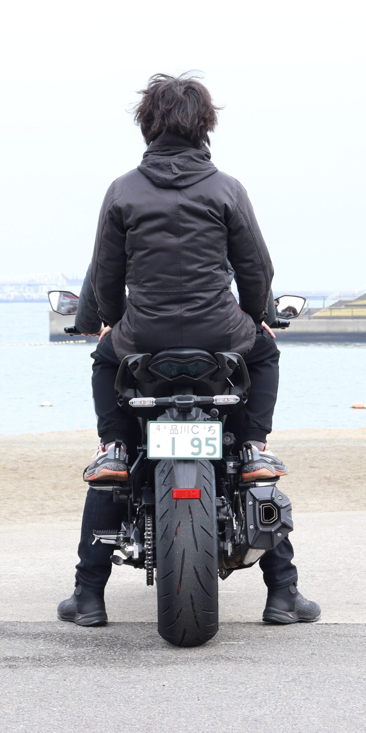 Z900SE:両足べったりは難しく、母指球〜つま先接地。足を真下に下ろしやすいので不安を感じない
