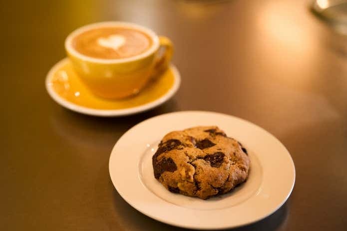 クッキーに合わせて提供されるのは、スペシャルティ豆を使用したオリジナルブレンドのエスプレッソドリンク。深煎り寄りで、ラテやアメリカーノは甘いクッキーとの相性も抜群です。