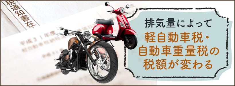 バイク所有時に納める必要がある税金としては、大きく分けて「軽自動車税」と「自動車重量税」の2種類です。所有するバイクの排気量によって、納税が不要となるケースがあるほか、支払いのタイミングや税額も変動するため気を付けましょう。