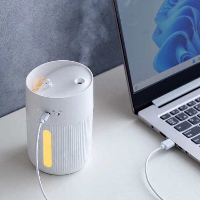 本体上部から水を注ぐだけの簡単給水、超音波式の静音性能といった最新加湿器の定番機能を搭載しつつ、バッテリー内蔵のコードレスモデル。充電はパソコンのUSB端子、スマホ用の充電器からも行なえ、デスクで利用するのにぴったりのスペックとサイズ感です!