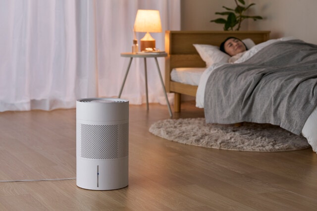 加湿器による湿気は、お部屋に飛散している花粉やハウスダストに付着して、それらを床に落とす効果あり。そこで、床に落ちた花粉やハウスダストを空気清浄機で吸引、さらにモップで床掃除するのが効率のいい対策となります。