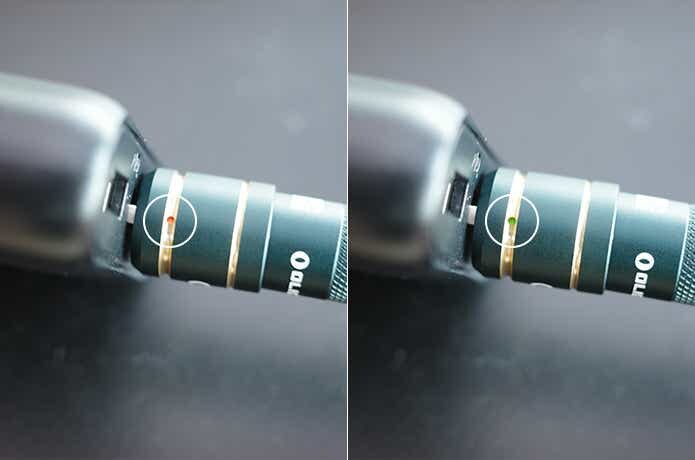 充電中は本体側面の小さなライトが赤く点灯してくれるので、通電状況もチェックできます。充電が完了すると緑に変わる仕組みで、ステータスがひと目で確認できます。