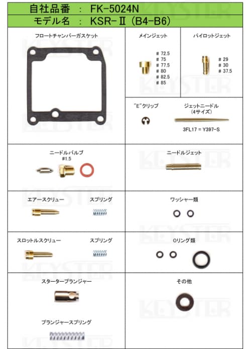 キースター燃調キットは、岸田精密工業が手がけるキャブレター用リペア&セッティングキットです。