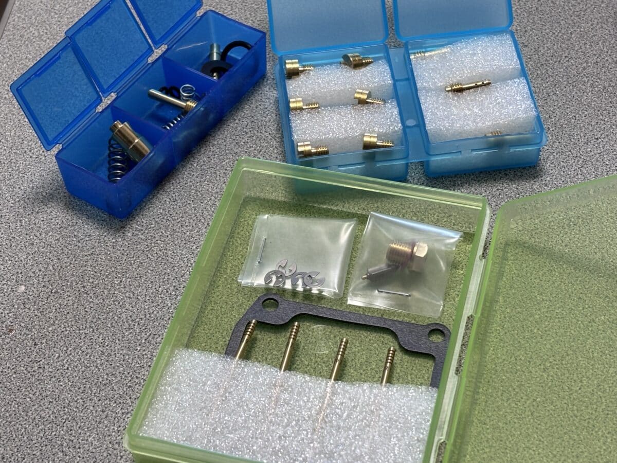 キャブレターを構成する主要なインナーパーツがすべてそろっていて、これらを交換することでキャブレターの修復ができるというスグレモノです。しかもお値段4,400円!(一部車種除く)