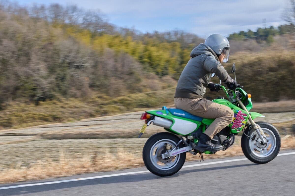 今まで4ストエンジンの原付でマスツーリングに行くと、中型以上のバイク仲間がペースを合わせてゆっくり走ってくれていたのですが、2ストエンジンのKSR-Ⅱなら問題ないでしょう。高速道路に乗れないこと、2人乗りができないことを除けばスキのないバイクです。買ってよかった!