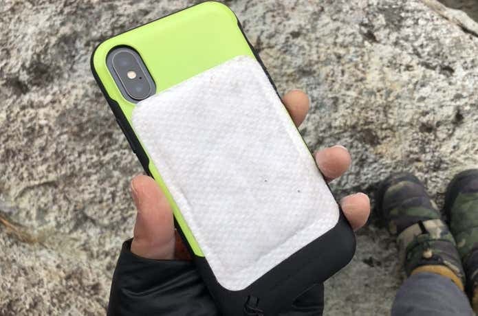 ◆スマホにカイロを貼る(ただし高温すぎてもスマホバッテリーにとってはよくありません。ぬるめのカイロが◎)