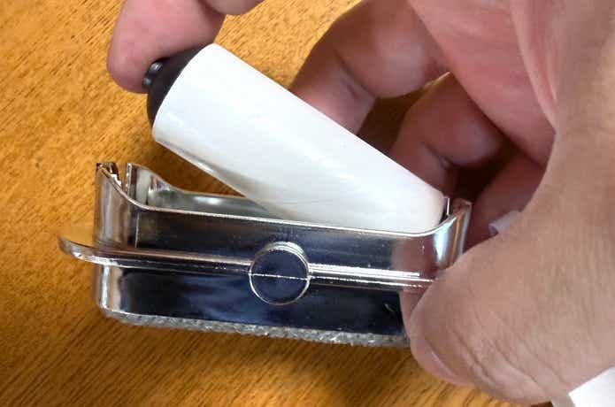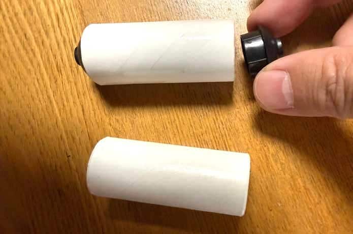 その後は、ロール両端にセットされた軸パーツを外し、新しいロールに付け替えて戻すだけです。直感でできちゃうレベルです。