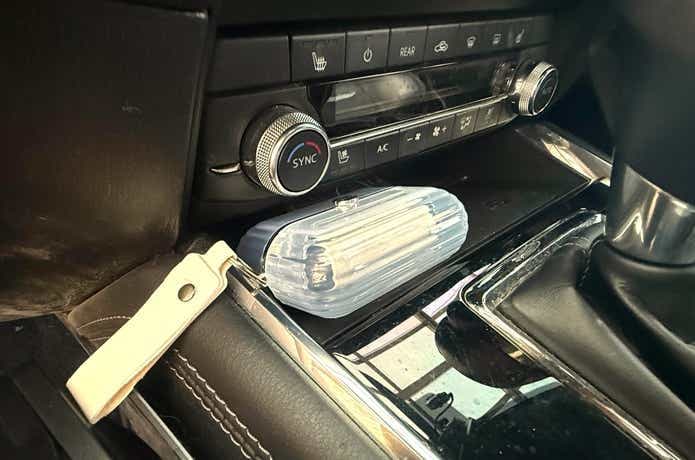 ダッシュボード周りに置いておくのもアリ。助手席の人がそこら中キレイにしてくれることを期待するなら、こっちがいいかも?