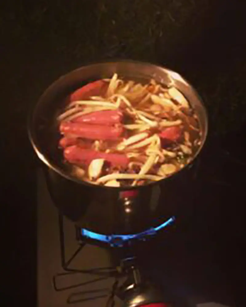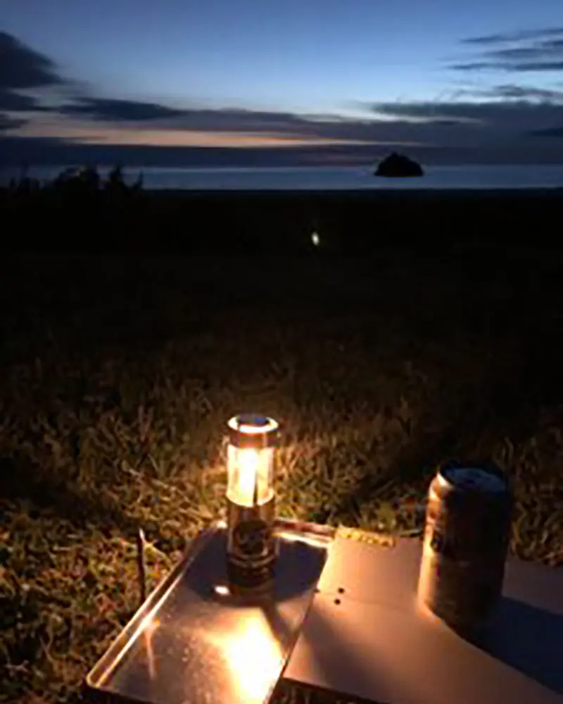 今回のキャンプのために横浜店のキャンプコーナーで購入した、UCOのキャンドルランタンがいい仕事します♪ ほろ酔いで始めた闇鍋は隠し味のビールのせいか、適当に入れた調味料のせいか、なんだかちょっと苦かった?(汗)