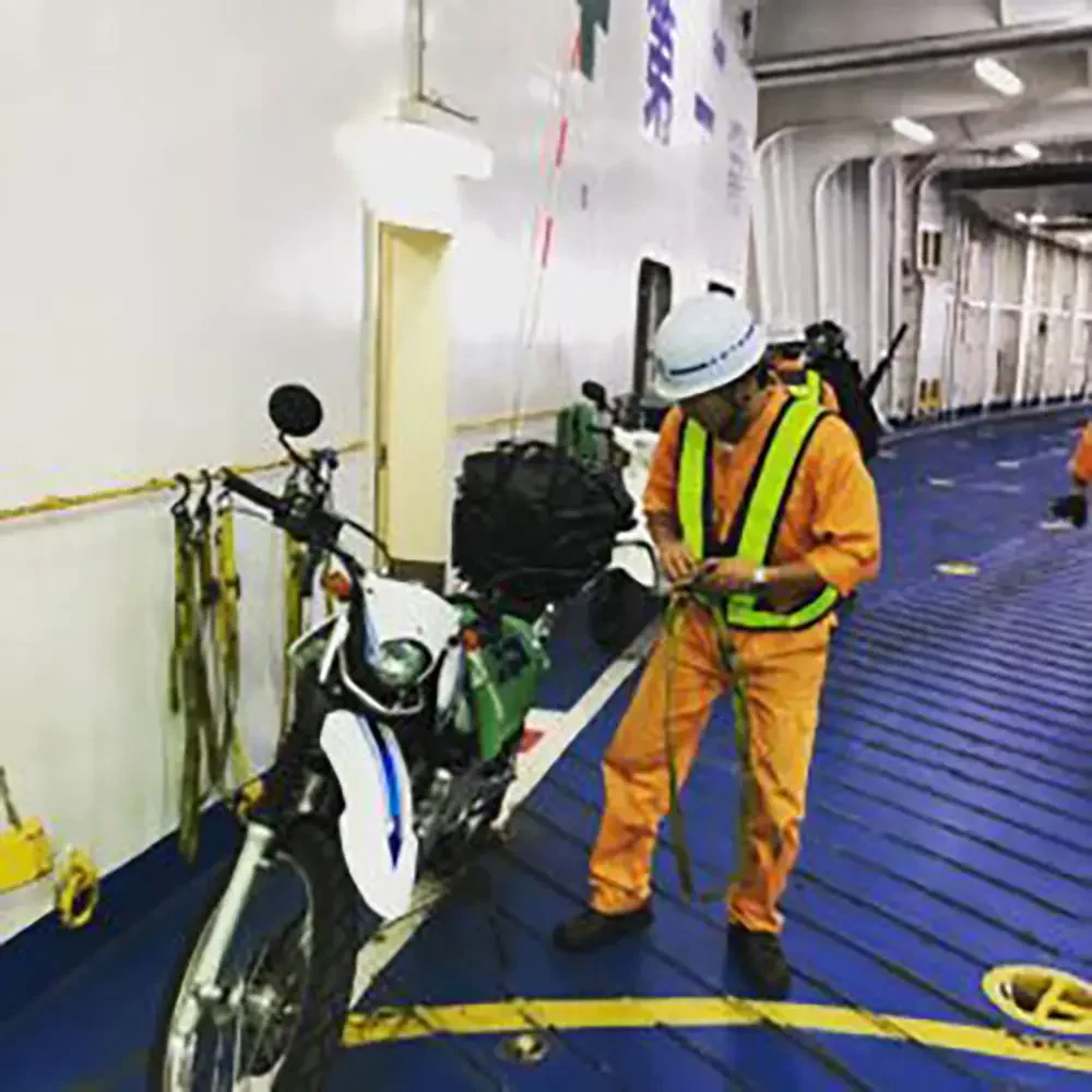 15時05分、おけさ丸は無事両津港に接岸。下船もバイクが一番。佐渡汽船はバイク乗りにやさしい?