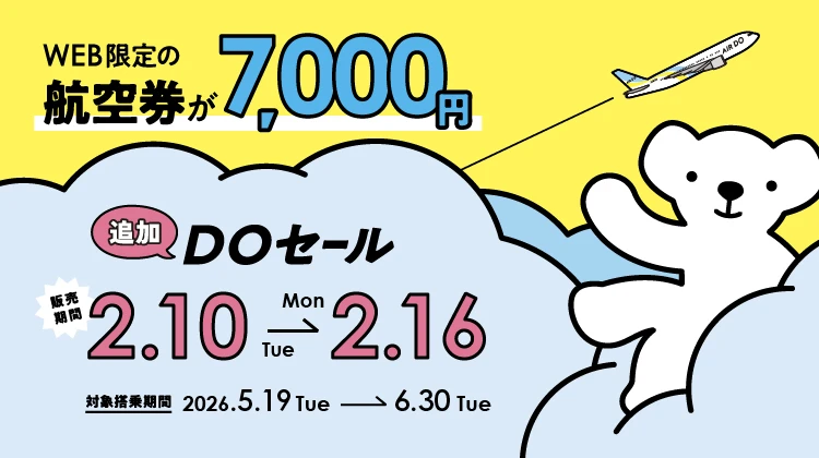 「DOセール」の予約は、AIRDO公式Webサイト限定で受け付けられます。販売期間は2026年2月10日(火)0:00~2月16日(月)23:59までですが、各便の販売座席数には限りがあり、便によっては設定がない場合もあるため注意が必要です。