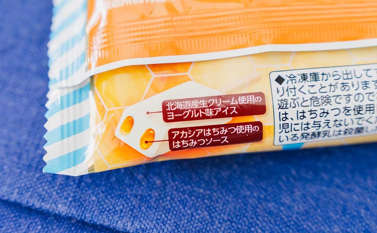 この商品は、トレンドの“はちみつヨーグルト”を“はちみつたっぷり”の仕様で楽しめるアイスバーです。北海道産生クリームを使用した乳感のあるヨーグルト味アイスに、はちみつの女王と呼ばれている“アカシアはちみつ”を使ったはちみつソースがたっぷりと入っています。
