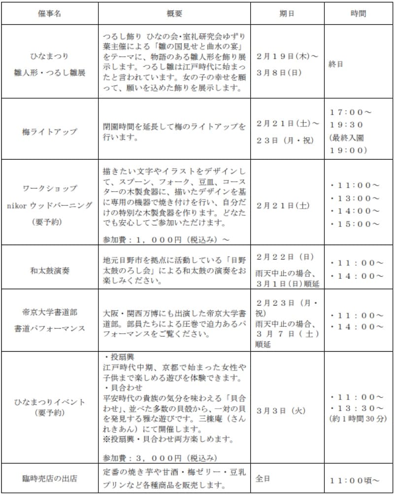 京王百草園「梅まつり」開催概要