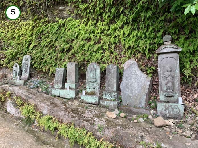 少し進むと右手の斜面には石仏群があり、切通しを作った人々の祈りを感じ取ることができます。