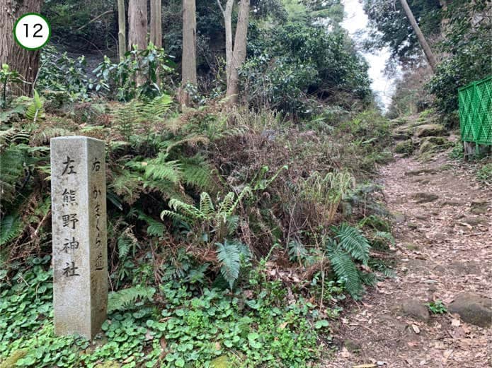 登山口・朝比奈峠に到着です。道標の通り朝比奈切通しへは右(ほぼ正面)の「かまくら道」を進みます。左に進むとすぐに、源頼朝が和歌山県・熊野三山の御祭神を勧請した(神の分霊を迎えた)といわれる「熊野神社」があります。