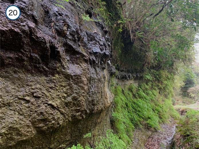地質も水分を多く含んでいるようで、切通しの岩肌からも水が染み出している様子がわかります。