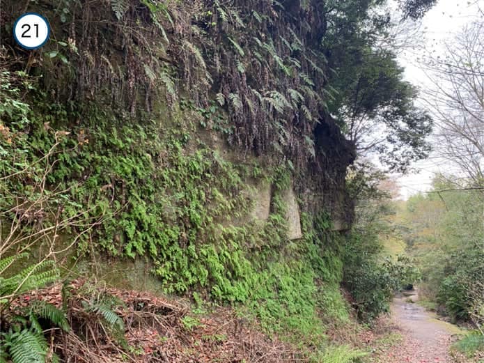 こちらの岩肌にはシダなどの植物が繁茂しています。自然に溶け込んだ切通しの風景も、ひと味違った魅力がありますね。