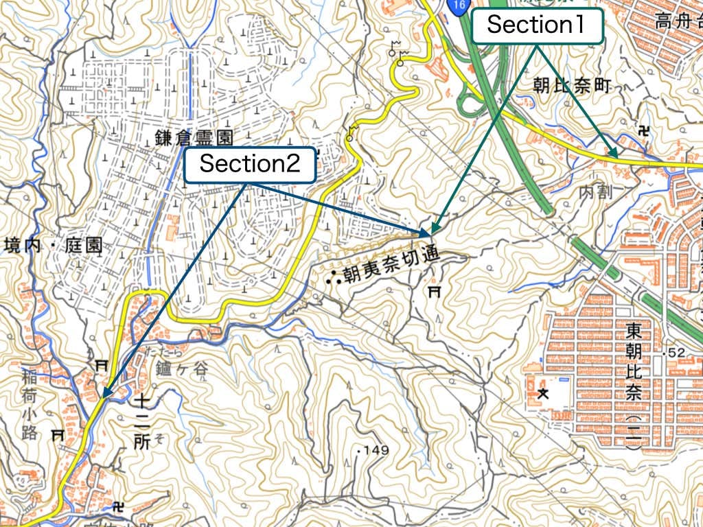 (0.6km・約19分) ▶Section2:登山口・朝比奈峠〜十二所神社入口バス停