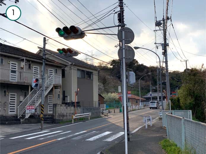 下車して200mほど進んだ道路の反対側にコンビニエンスストアがありますが、車の往来が激しいのでコース詳細ガイドで最初に紹介する横断歩道を渡ってから立ち寄ることがおすすめです。