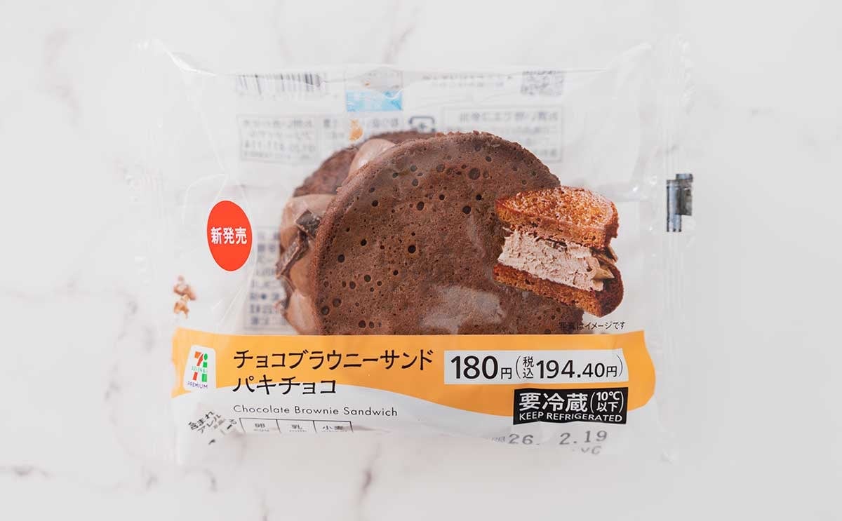 セブン-イレブンは2026年2月10日(火)に、「セブンプレミアム チョコブラウニーサンド パキチョコ」(税込194.40円)を発売しました。