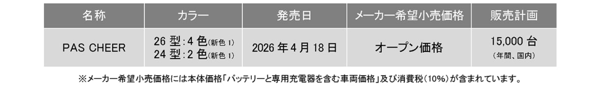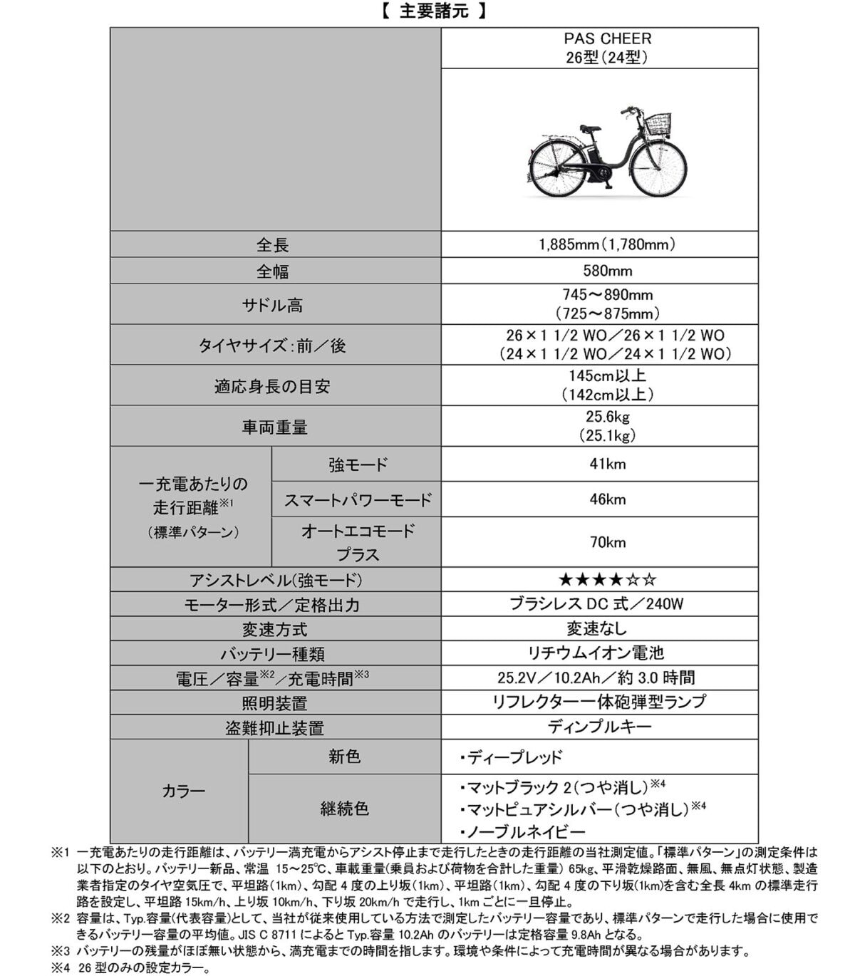 電動アシスト自転車「PAS CHEER」2026年モデルを発売~容量アップした新型バッテリーを採用し高い利便性を実現~