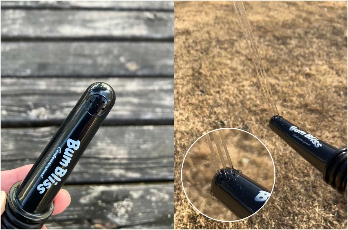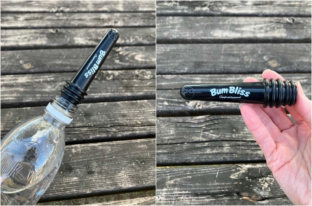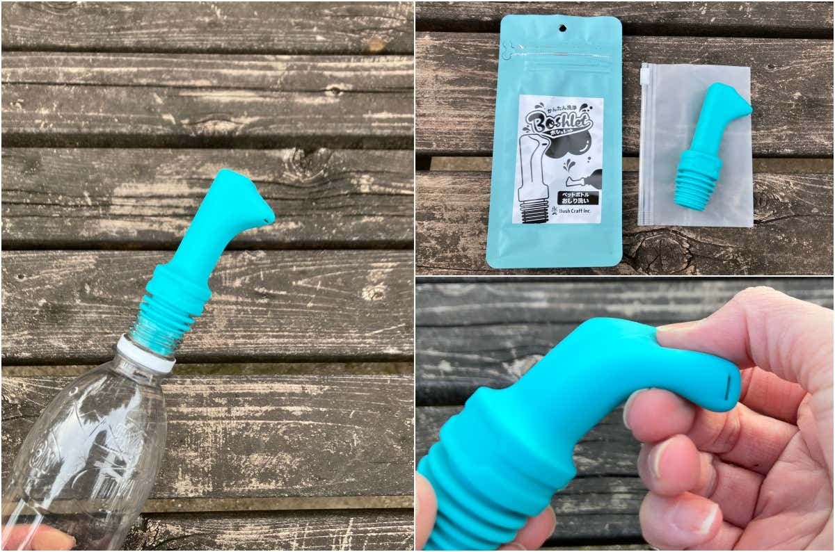 「海外でも、山でも、ちゃんと洗いたい」そんな悩みから生まれた Bum Bliss。洗える環境が限られる場面で頼りになる、ペットボトルに押し込んで装着するタイプの携帯シャワーです。