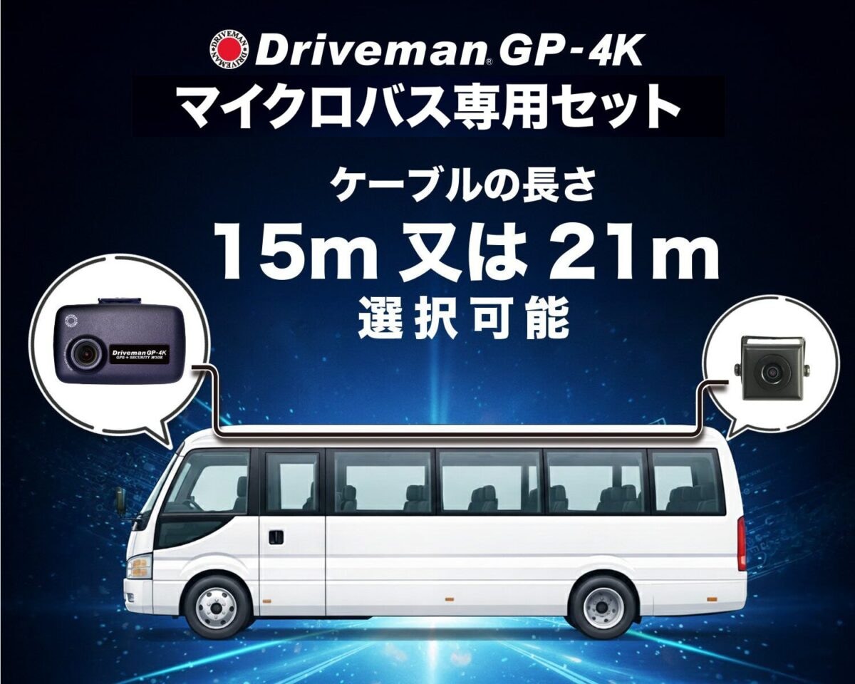 アサヒリサーチ株式会社は、マイクロバス向けドライブレコーダー「Driveman GP-4K マイクロバス専用セット」を発売した。