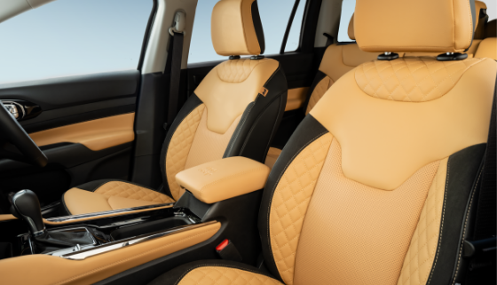 「Jeep® Commander Track Edition」には、ブラックスエード調のインストルメントボルスターを採用しました。シートデザインは、ジープのフラッグシップモデルであるGrand Cherokee L Summit Reserve(グランドチェロキーLサミット リザーブ)を彷彿とさせる、クラスを超えた上質な仕上がりです。ボディカラーは、「パールホワイトトライコート」(100台限定)と「テクノグリーンメタリック」(50台限定)の2色を用意しました。