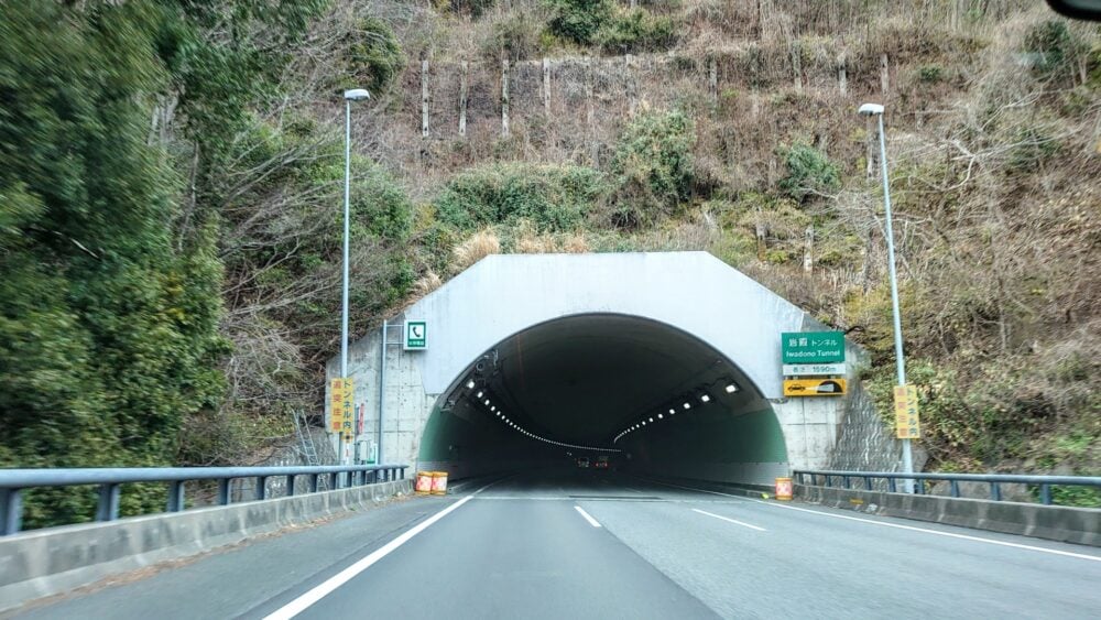 もし、トンネル手前で停車できるときは、ハザードランプを点灯させて後続車に注意を促し、トンネル手前の道路左端に寄せて停車します。