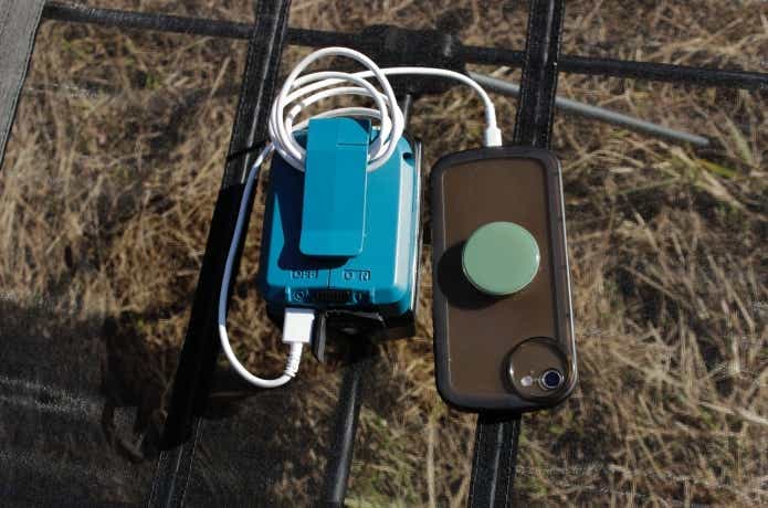 ということで、早速電池切れしてしまったスマホを、満タンにした18Vのバッテリーで充電してみると……