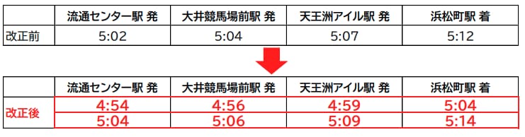 天王洲アイル駅発:4時59分(現行 5時7分)