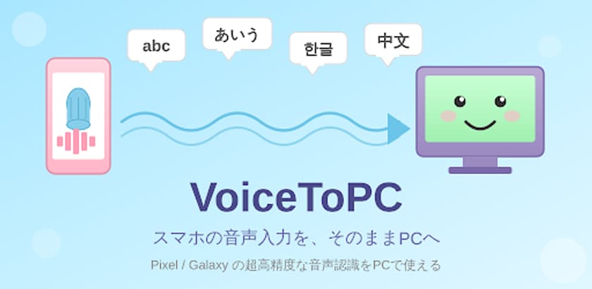 VoiceToPCがスマートフォンの音声入力をPC入力へリアルタイム変換!