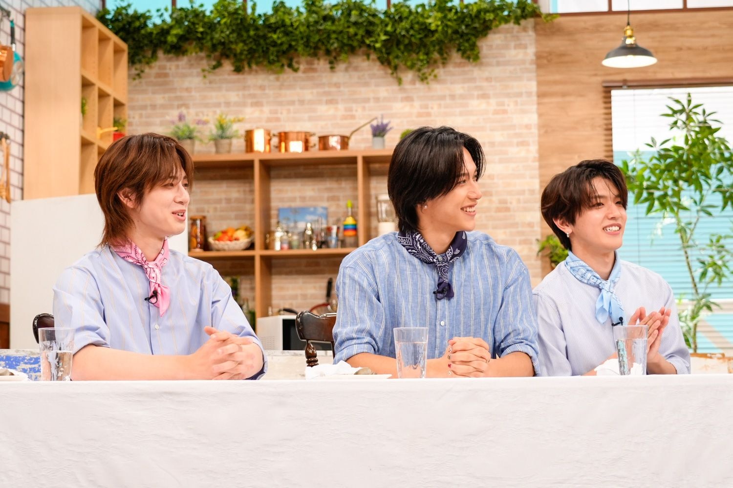 2月26日(木)に配信される第5回でも、メンバーたちは4チームに分かれて料理対決。木村柾哉&松田迅はハワイ、後藤威尊&許豊凡&田島将吾はインド、池崎理人&佐野雄大&高塚大夢はフィンランド、尾崎匠海&西洸人&藤牧京介はイタリアの名物メニューで勝負することに。