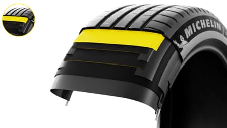 Pilot Sport 5 energyではタイヤサイドウォールだけでなく、溝底へと範囲を拡大。