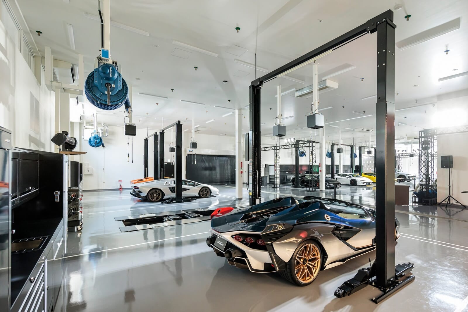 このサービスセンターは、ウルスを完全に持ち上げ、メカニックが直立して下回りを点検できる高さを確保するために、既存の物件のリノベーションではなく、「土地を探し、ゼロから建てる」という選択をしたのだ。