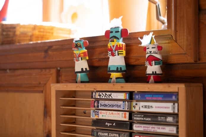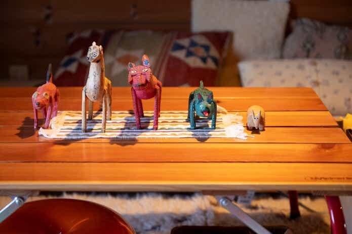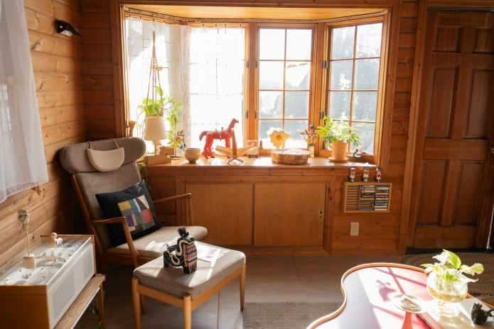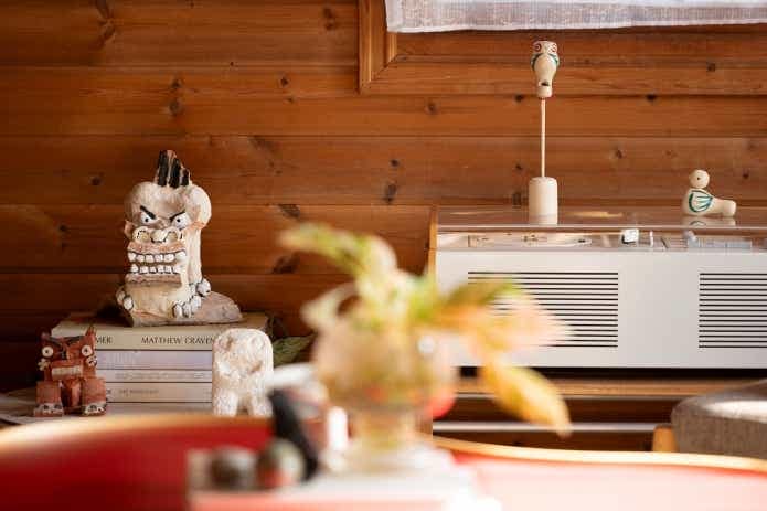 今回訪れたお住まいにも、アウトドア感を押し出した演出はありません。クラシックな雰囲気漂うログハウスの空間には、北欧の家具や日本各地で集めた民芸品がセンス良く置かれていました。