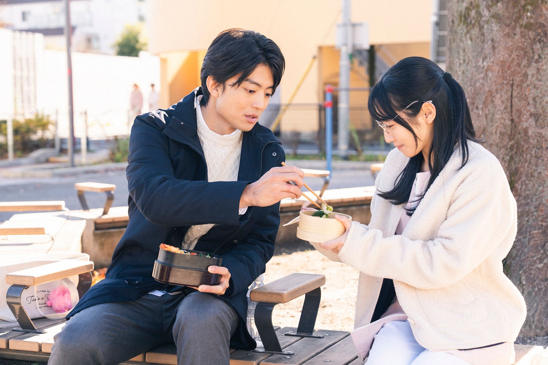 (C)「略奪奪婚」製作委員会仲良くお弁当を食べる司(伊藤健太郎)と梅田(川島鈴遥)