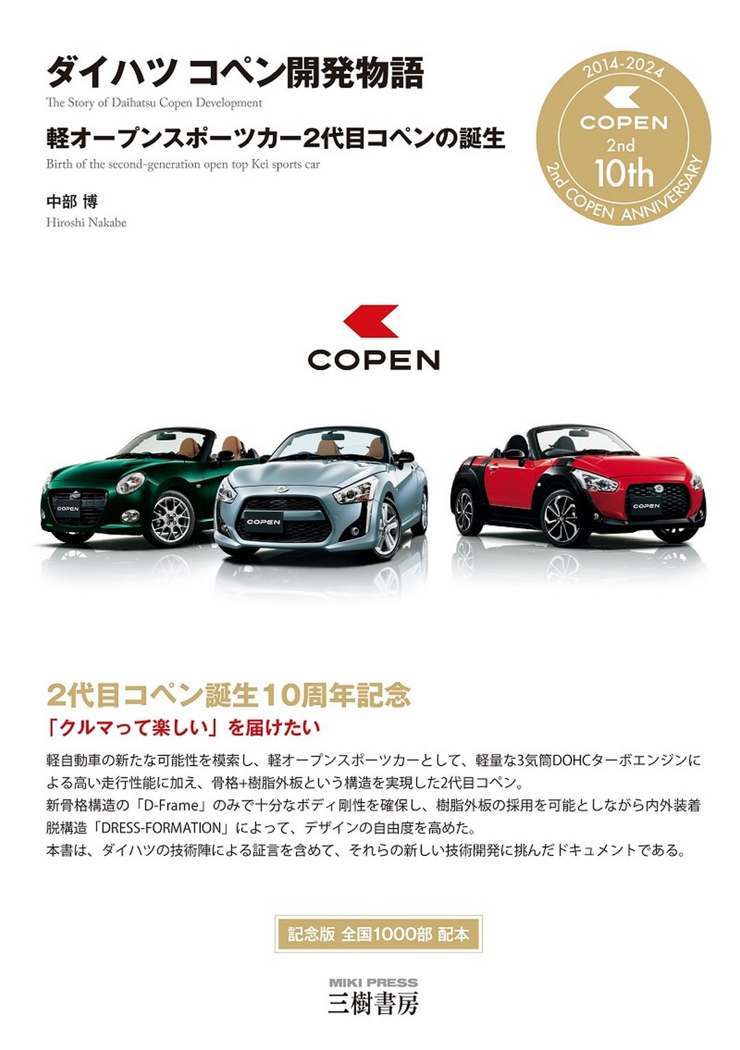 書評では、ダイハツ コペン開発物語をご紹介しよう。2代目ダイハツ コペン誕生10周年記念刊行となる。