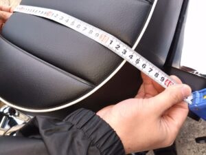 さらにこの足つきの悪さにはシートの幅も関係してます。測ってみると……。
