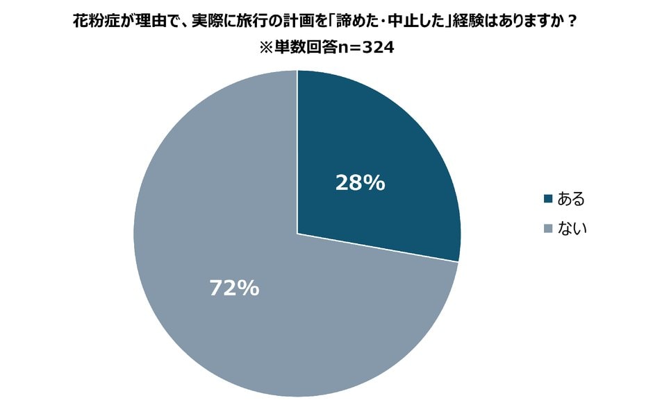 さらに、約3割が「花粉症が理由で、旅行の計画を諦めた、あるいは中止したことがある」と回答しました。春の旅行を現実的に左右する大きな要因になっている様子がうかがえます。
