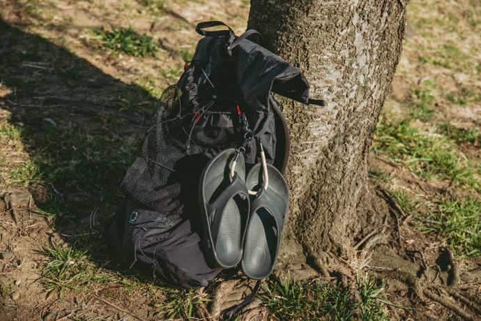 床やテーブルに置きたくないものを、浮かせておく、なんてことも。ループスを通すことさえできれば、サンダルやシューズをぶら下げることもできちゃいます。