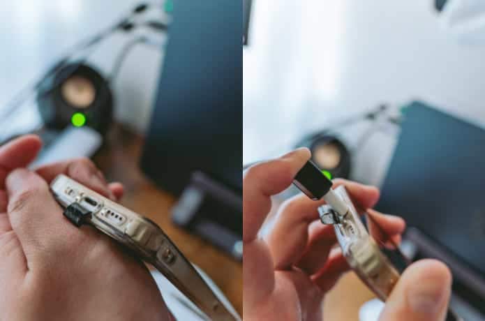 スマホケースによるかもしれませんが、充電口の小さいスマホケースの場合、端子部分の収まりが悪くなります。
