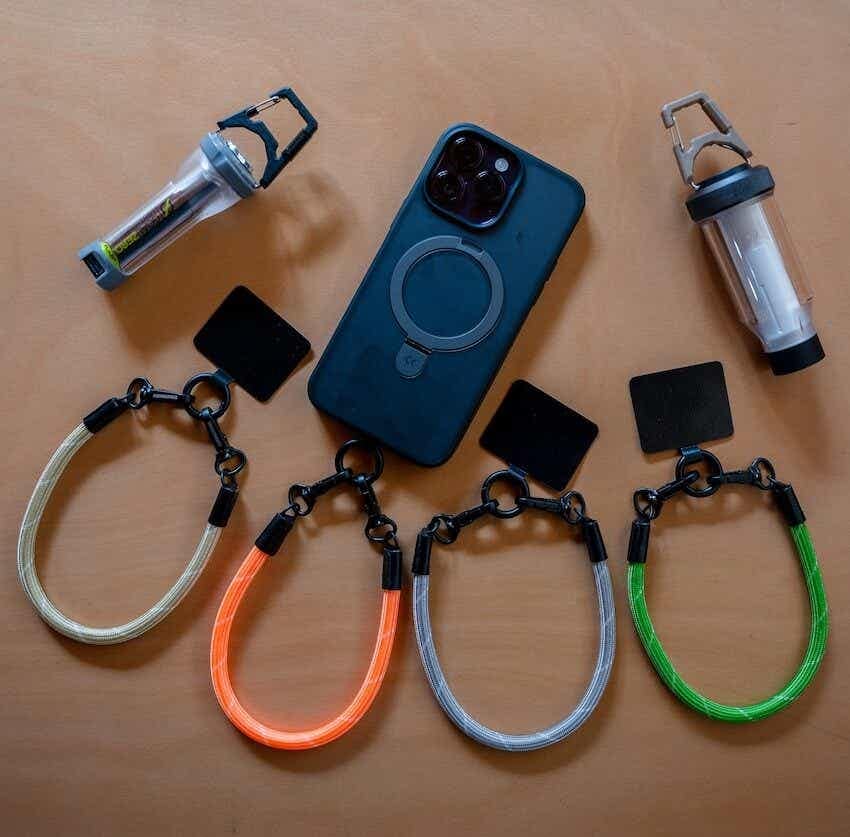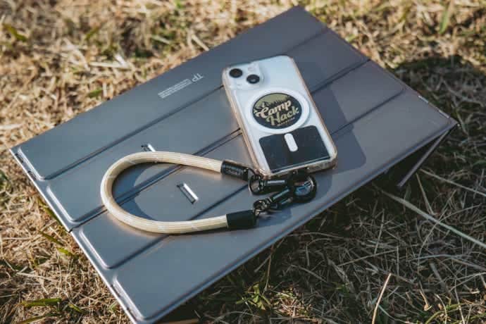 スマホのハンドストラップとして以外にも、活用方法は無限大。例えばリーシュコードのように使用したり、テント内で少し高すぎるランタンの位置を下げたり。