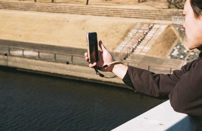 まずはハンドストラップとしての最大の魅力、落としにくいということ。基本的に手首にかけていれば、落下させてしまう心配はありません。