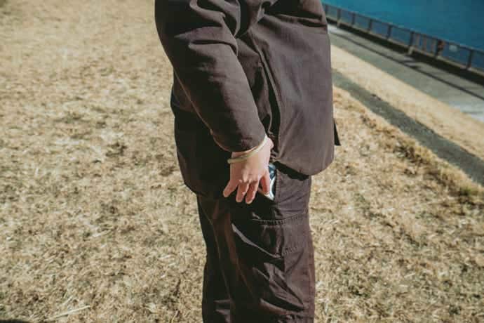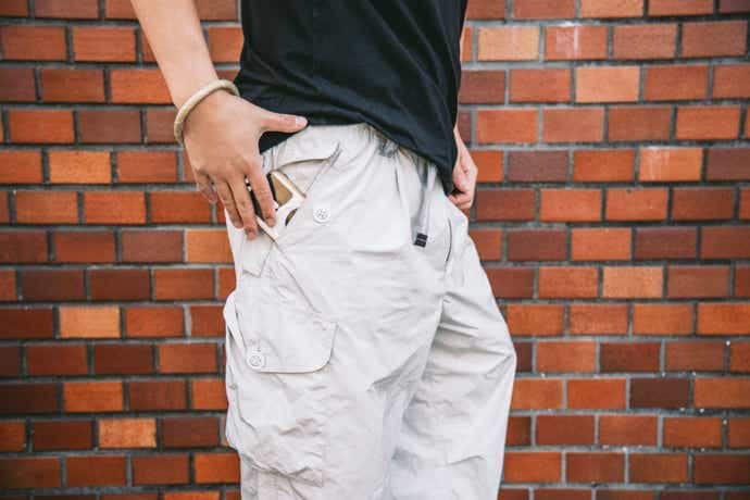 また、意外と活躍するのがフラップ付きのポケットを履いているとき。